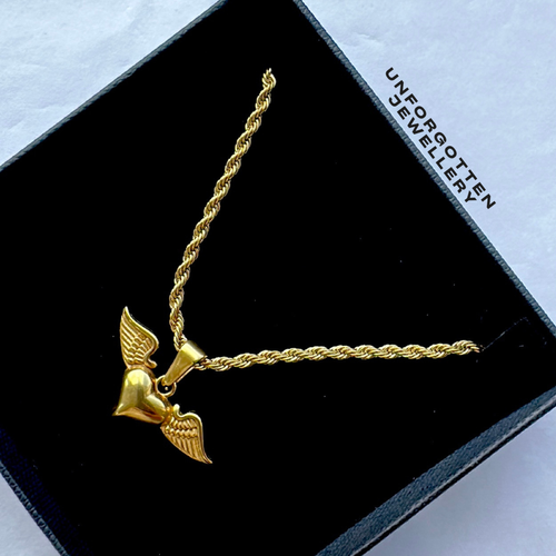 Embrace elegance with the Angel Heart Pendant, crafted in durable stainless steel and luxuriously 18k gold-plated for a lasting, radiant shine.